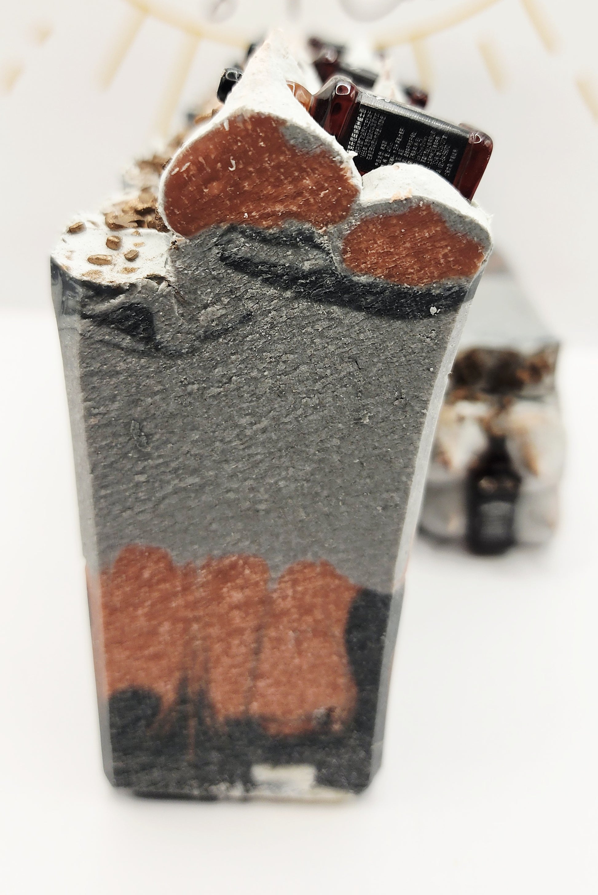 Ingredients: Olive Oil, Palm Oil, Coconut Oil, Castor Oil, Distilled Water, Dendritic Salt, Lye, Mica, Activated Charcoal, Titanium Dioxide, Kaolin Clay, Colloidal Oatmeal, Mica Colored Sea Salt, Clay Embed, Fragrance Oil